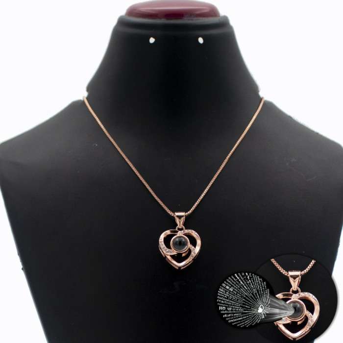 Romantic Memory Rose Heart Projection 100 Language I Love You Necklace for Lover Couples- Rose Gold 100 Language loves Fationable Stainless Steel Chain Necklace Look Awesome Material Type: Stainless Steel Jewelry Main Material:Stainless Steel Selling Units: Single item